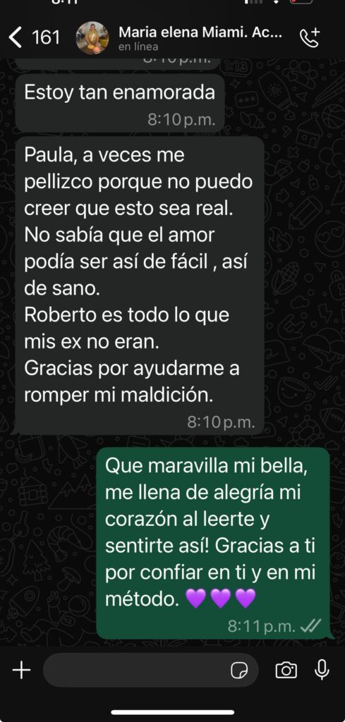 3 llamadas de emergencia directas conmigo para esos momentos críticos donde necesitas claridad inmediata. Estas llamadas han salvado relaciones que parecían perdidas, han rescatado a mis alumnas de seguir perdiendo tiempo con hombres no disponibles emocionalmente, y les han ahorrado meses de sufrimiento, energía desperdiciada y lágrimas innecesarias. Literalmente han sido la diferencia entre el sufrimiento y la claridad que cambia vidas.